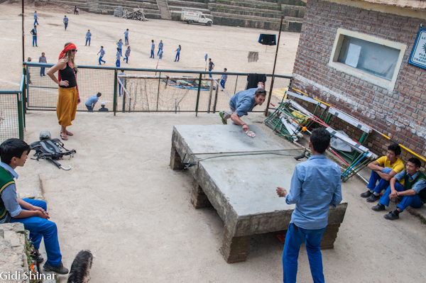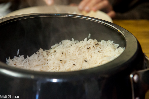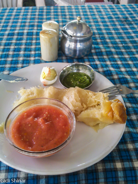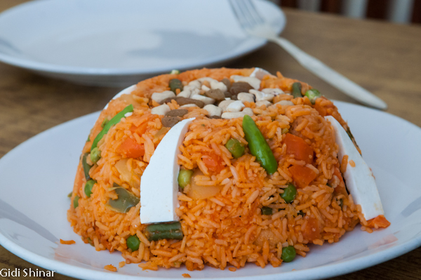 הגעתי לפתח חדר האוכל ואמרו לי שרק בעוד שעה יגישו את האוכל, אז התיישבתי על המדרגות בכניסה יחד עם חבורת נערים מקומית. יחד איתי היו גם אנשים שהכינו את המגשים והסכו"ם להגשה.