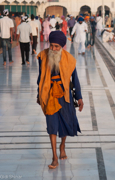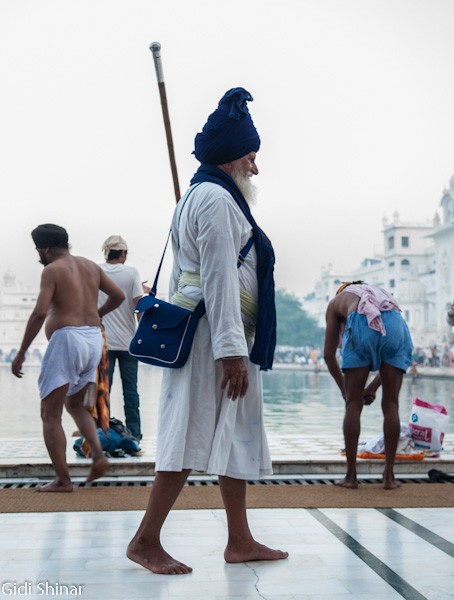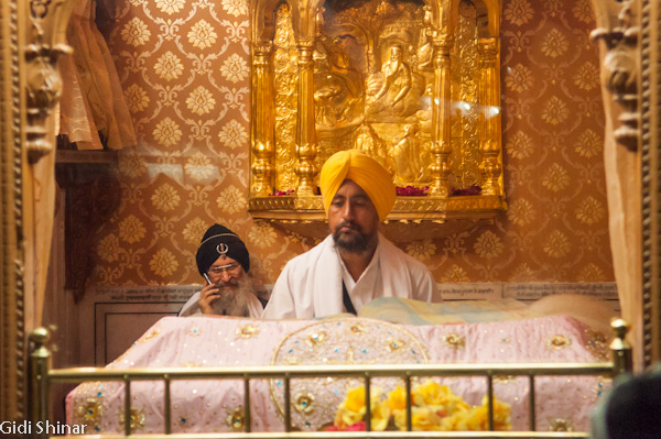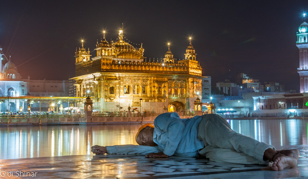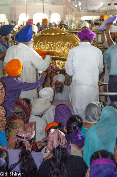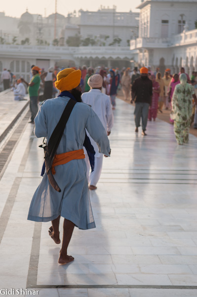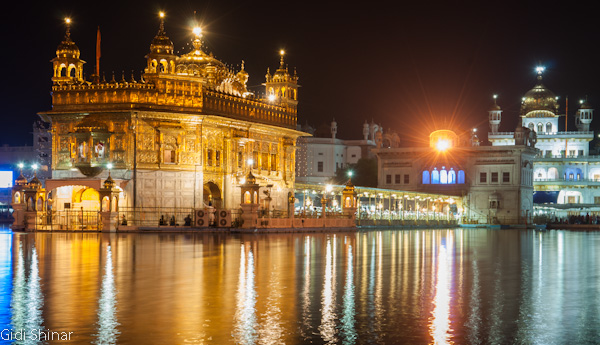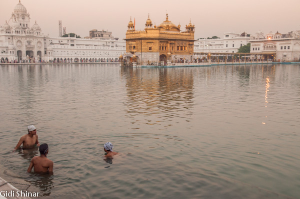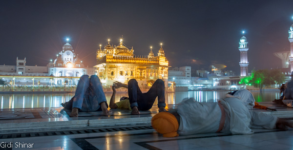 הפעם המקדש נראה והרגיש אחרת. בבוקר הייתה בו אווירה של עוד אתר תיירות, כעת, האווירה יותר אינטימית ומזמינה, למרות מאות האנשים שעדיין באים והולכים כאילו זה היה אמצע היום. התיישבנו על ריצפת השיש הלבנה וצפינו במתרחש. מאות אנשים נכנסים לרחבת המקדש ומסתובבים מסביב לבריכה, חלק מתיישבים על המדרגות המובילות לתוך המים וסופגים מהרוגע והיופי שהמקדש המואר מקרין, חלק מתמקמים בחלק האחורי ונשכבים למנוחה קצרה, חלקם הגיעו מהקצוות מרוחקים ביותר של הודו ונסעו עשרות שעות ברכבת על מנת להגיע למקדש המוזהב.